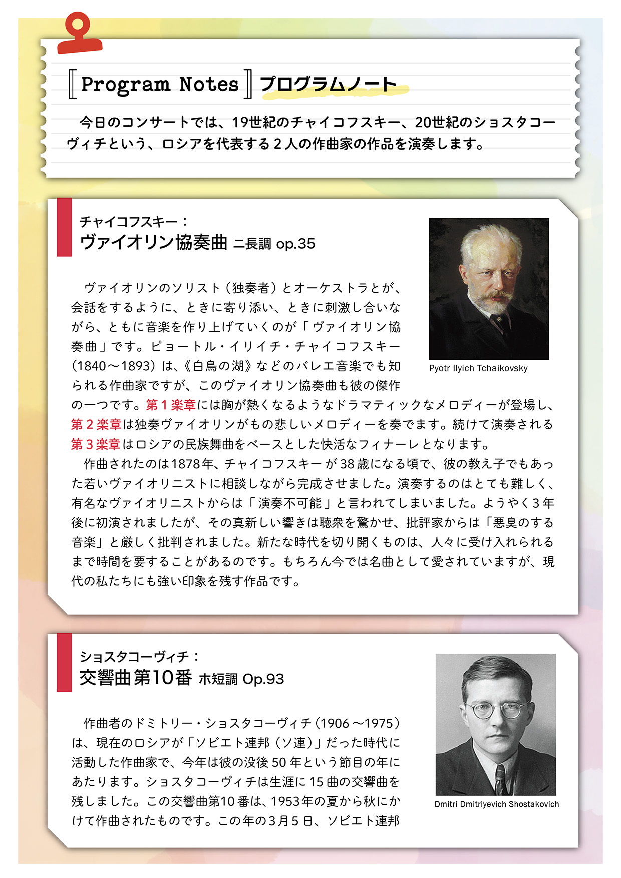 今回のコンサートでは、19世紀のチャイコフスキー、20世紀のショスタコーヴィチという、ロシアを代表する2人の作曲家の作品を演奏します。開演前のホールを大公開!